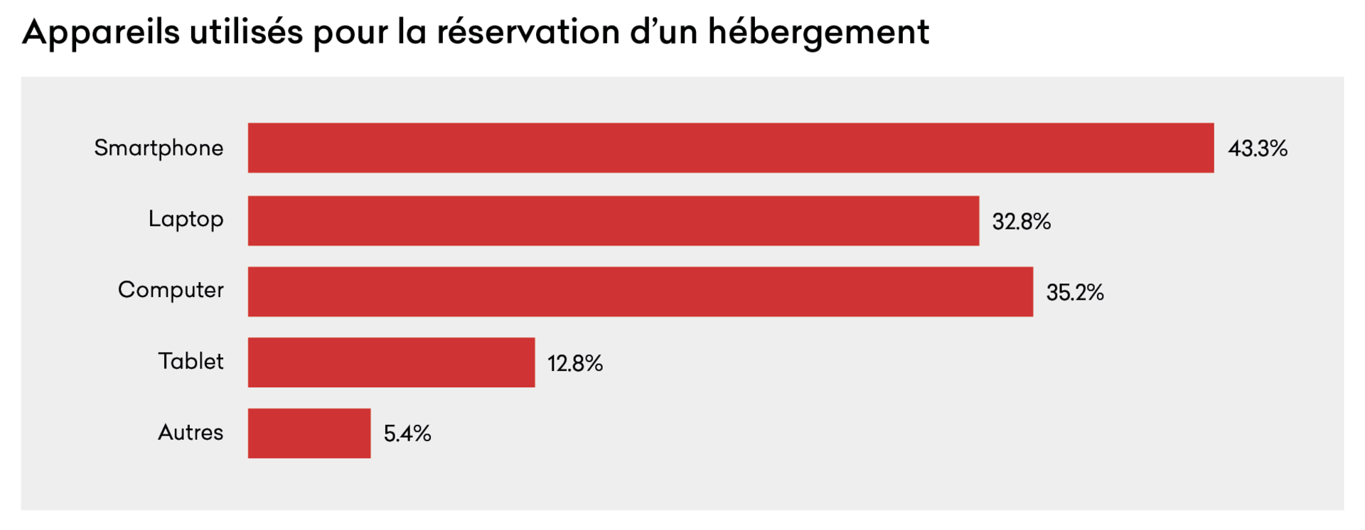 La flexibilité se reflète également dans l'ordre de réservation : 42,9 % choisissent en fonction de la situation, en réservant d'abord soit l'hébergement, soit le transport. Seule une personne sur cinq privilégie le moyen de transport en premier, tandis que 23,5 % réservent les deux en même temps.