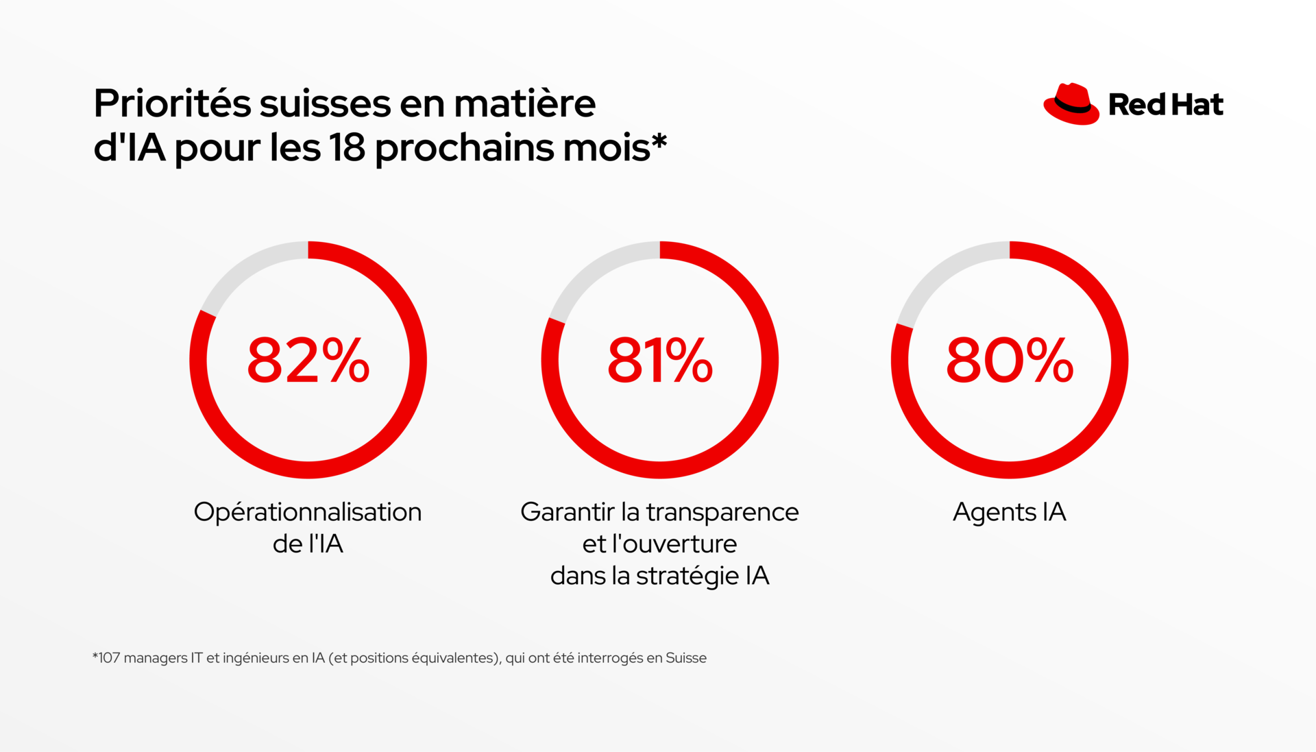 Zurich, le 19 novembre 2025 – Red Hat, le premier fournisseur mondial de solutions open source, a publié les résultats d'une nouvelle étude (1). Interrogés sur la stratégie informatique de leur entreprise pour les 18 prochains mois, 79 % des répondants en Suisse indiquent que le cryptage est une priorité absolue à l'ère des ordinateurs quantiques, suivi par la virtualisation (76 %) et le cloud hybride ou multi-cloud (75 %). 75 % accordent également une grande importance à l'IA : les résultats montrent que les entreprises suisses prévoient d'augmenter leurs investissements dans l'IA de 30 % en moyenne d'ici 2026 (2). Cependant, 97 % des entreprises interrogées affirment ne pas encore constater de retour sur investissement dans l'IA. (3).